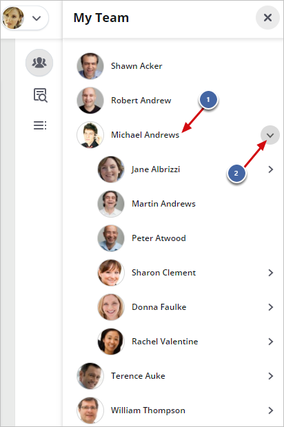 2. Click a chevron to expand and view that employee's direct subordinates, enabling you to select and load their information.