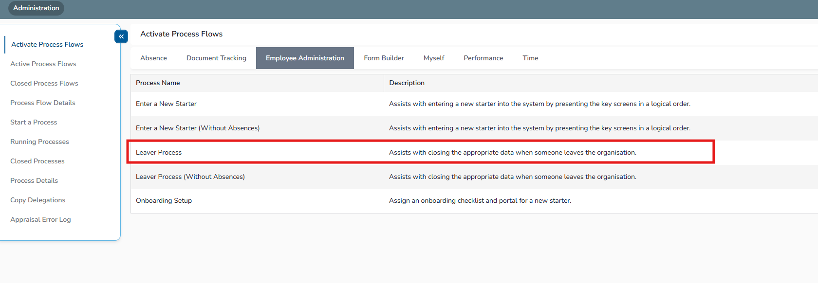 To resolve this, you will need to terminate the leaver process flow and then activate it again. This can be done by going to