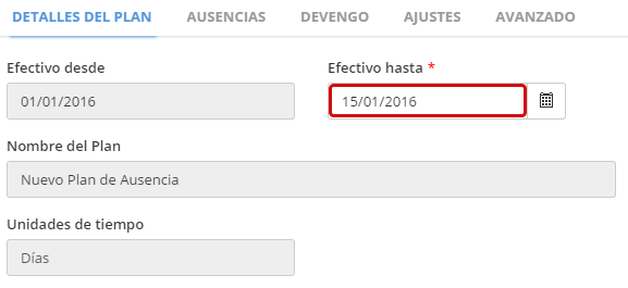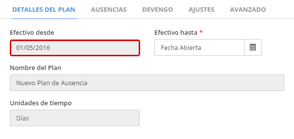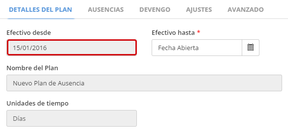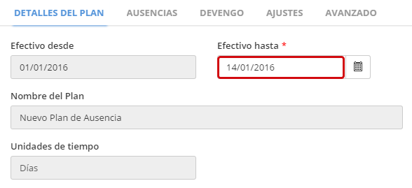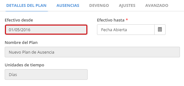 Ausencias >> Tipos de Planes de Ausencia >> Detalles Tipo de Plan de Ausencia >> sección de Configuración de Derechos: