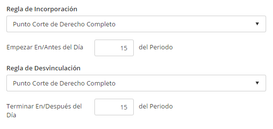- Reglas de Desvinculación = Punto Corte de Pleno Derecho: Empezar En/Antes del Día 15 del Periodo