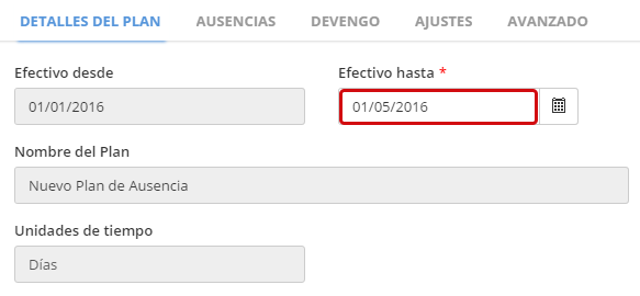 Un empleado es inscrito en un plan desde el 01/01/2016 al 01/05/2016.