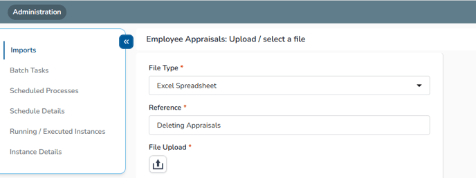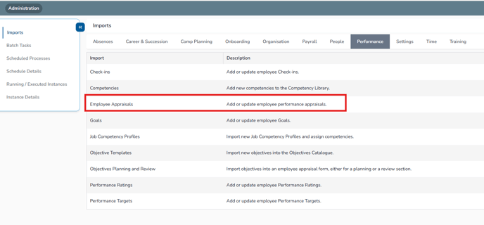 Administration >> Imports & Batch >> Performance >> Employee Appraisals:
