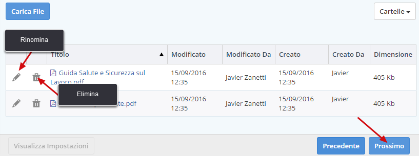- Inoltre è anche possibile Rinominare ed Eliminare il file.