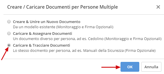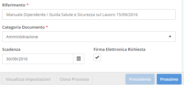 Questo processo consente di caricare ed inviare lo stesso documento ad uno o più dipendenti, che devono segnare di aver letto il documento e, se configurato anche di firmare il documento.