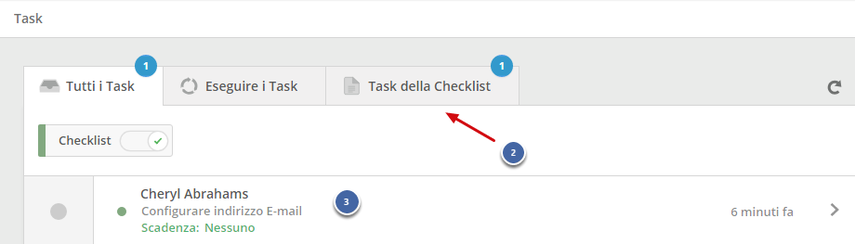 - Selezionare Tasks della Checklist per visualizzare tutti i tasks da completare