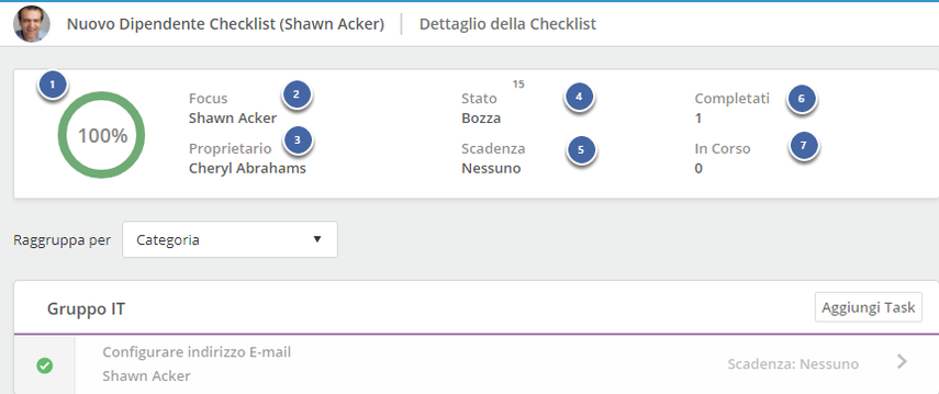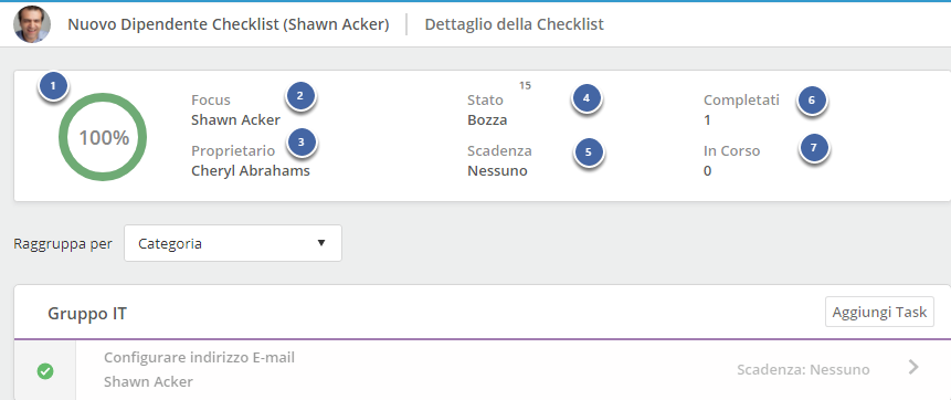 - Selezionare la persona che sarà il Focus della checklist (esempio: nuovo dipendente)