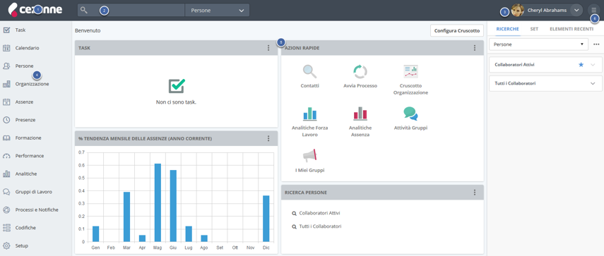 5. Cruscotto - Cezanne OnDemand offre numerosi cruscotti configurabili che contengono indicatori chiave, ricerche e link. Per maggiori informazioni su come configurare il cruscotto, vedi: Crusscotti.