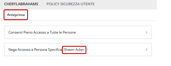 | Consenti Pieno Accesso | Darà all'utente la possibilità di visualizzare, modificare, aggiungere e cancellare i dati delle persone nella policy. |