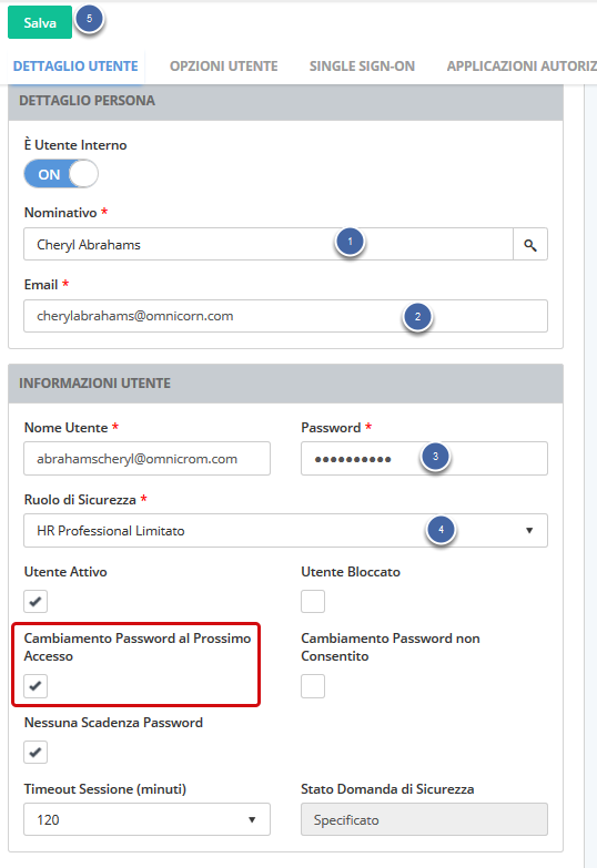 1. Aggiungere un Nuovo utente HR Professional Limitato