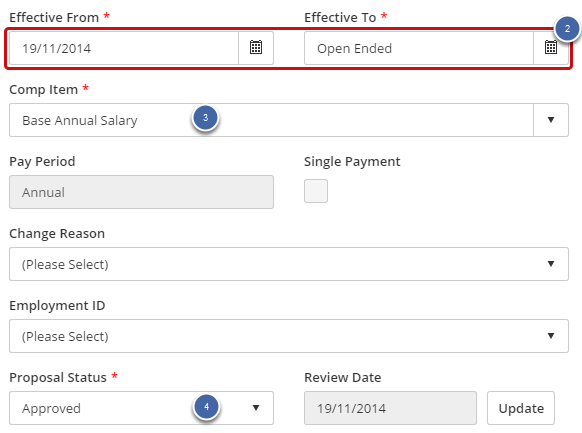 2. Fill in the Effective From and Effective To dates; these should be the dates that the proposed compensation record will be effective.