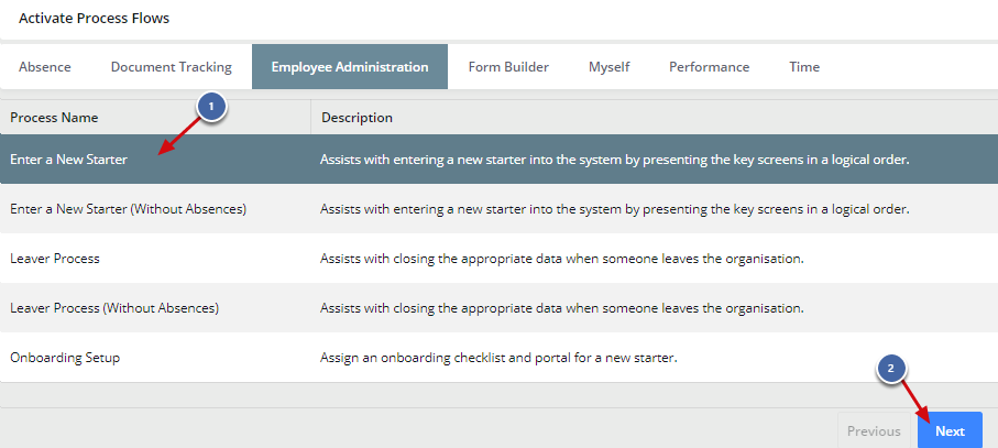 There are two ways that the process can be started, depending on if the new employee has previously worked for the organisation: