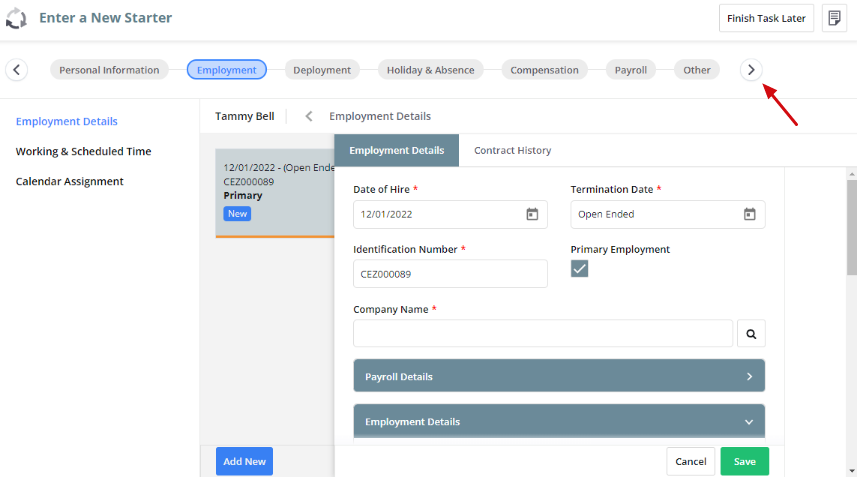 This article will guide you through the screens that you have to fill out in order to add a new hire or rehire a previous employee in the Cezanne system.