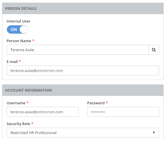 - Change the Person Name and E-mail to an employee with a person record.