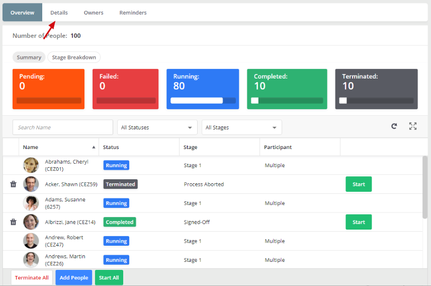 - For a terminated process flow, navigate to: Administration >> Processes >> Closed Process Flows.